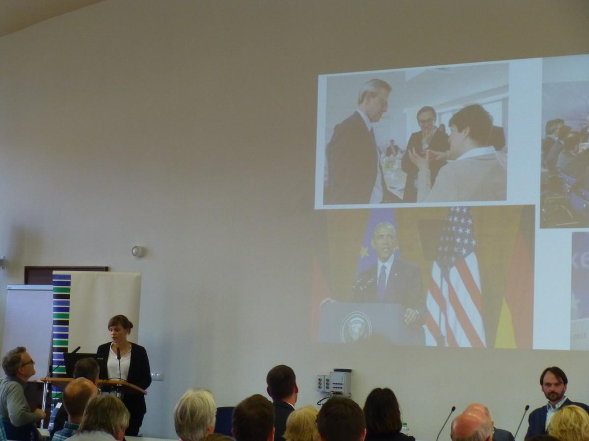 Nora Rohde machte in ihrem Referat deutlich, dass es dem DGB primär um den Schutz von Arbeitnehmern gehe. Handel müsse Regeln unterliegen, um dies zu gewährleisten. Frau Rohde trug die Hauptkritikpunkte an den beiden Freihandelsabkommen TTIP und CETA vor. Die Abkommen würden gegen internationale Regeln zum Schutz von Arbeitnehmern verstoßen und gewerkschaftsunfreundlich agieren. Sanktionsmöglichkeiten bei einem Verstoß gegen die Rechte von Arbeitnehmern seien bisher in den Verhandlungen nicht vorgesehen.