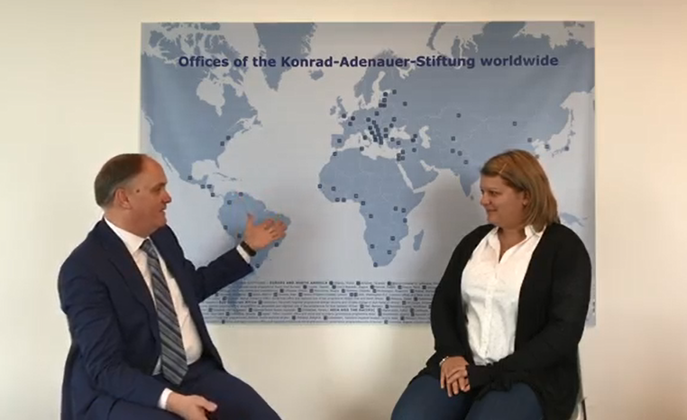 Stefanie Braun, Projektkoordinatorin der "One World - No Hunger" - Initiative im KAS-Büro Namibia, nahm als Vertreterin dieser Initiative des BMZ an der Frauenkonferenz CSW62 im Hauptsitz der Vereinten Nationen in New York teil. Dabei stattete sie auch dem hiesigen Stiftungsbüro einen Besuch ab und führte mit Büroleiter Dr. Stefan Friedrich ein Gespräch über die genannte Initiative, die sich für den Zugang zu Landnutzungs- und Besitzrechten für Frauen in Namibia einsetzt.