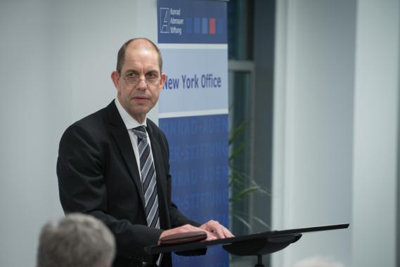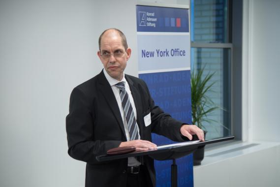 Leiter des Büros ist Dr. Stefan Friedrich (52), der zuvor das Team Politikdialog und Analyse der Stiftung in Berlin leitete. Seit Mitte der 1970er Jahre unterhält die Konrad-Adenauer-Stiftung ein Büro in Washington. Bei dem Standort New York handelt sich um eines von insgesamt über 90 Büros der Konrad Adenauer Stiftung weltweit.