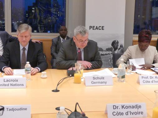 Für diese Analyse lud die KAS eine siebenköpfige Delegation aus der Region nach New York ein. Ziel war es, die 13 Jahre andauernde Mission mit hiesigen Peacekeeping-Experten der Vereinten Nationen und darüber hinaus zu evaluieren. Im Mittelpunkt standen dabei die Erfolge von UNOCI, wobei der Frage nach den Lehren, die für zukünftige Friedensmissionen gezogen werden können, besondere Beachtung geschenkt wurde.