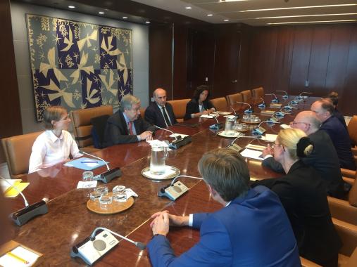 Im Anschluss traf die Delegation um Prof. Lammert mit dem Generalsekretär der Vereinten Nationen António Guterres zusammen. Thema des Gespräches waren die aktuellen Reformprozesse der Organisation, die bevorstehende Wahl zum Beobachterstatus der KAS beim Wirtschafts- und Sozialrat der UN (ECOSOC)und die Rolle Deutschlands bei den Vereinten Nationen, besonders im Hinblick auf den Nichtständigen Sitz im Weltsicherheitsrat.
