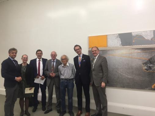 Bei einem anschließenden Besuch im Leo Baeck Institut wurde Herr Prof. Dr. Lammert von Direktor William Weitzer empfangen und in die Archivtätigkeit der Institution eingeführt, wobei er handschriftliche Aufzeichnungen von Albert Einstein einsehen konnte. Herr Lammert besuchte auch das Atelier des Künstlers Christo, welcher ihm sein neuestes Projekt vorstellte. So soll als weltweit größte Skulptur aus 410.000 Fässern eine moderne Mastaba geschaffen werden.