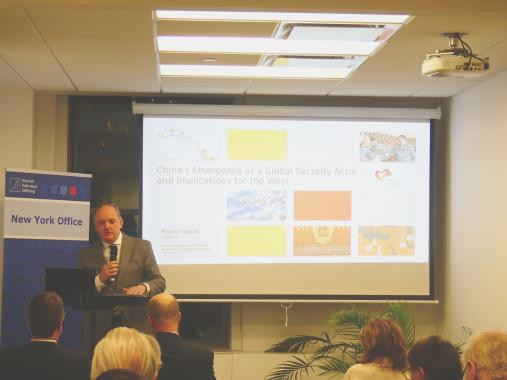 Der China-Experte Huotari untermauerte diese Aussage, indem er Chinas rasanten Aufstieg in der Weltwirtschaft, Pekings globale diplomatische Aktivitäten sowie die Neuorientierungen in Sicherheits- und Außenpolitik der letzten Jahre skizzierte. So weite China seine Präsenz in der Welt konsequent aus. Dazu gehören auch militärische Aktivitäten, die über den asiatisch-pazifischen Raum hinausgehen. China wickele globale Rüstungsgeschäfte ab, wolle in internationalen Organisationen die Agenda mitgestalten und baue eigene Sicherheitspartnerschaften auf. Diese Entwicklungen zeigten: Anders als früher sei China heute daran interessiert, international Partner zu finden. Mit diesem Ziel vor Augen engagiere sich das Land weltweit in verschiedenen Rollen: