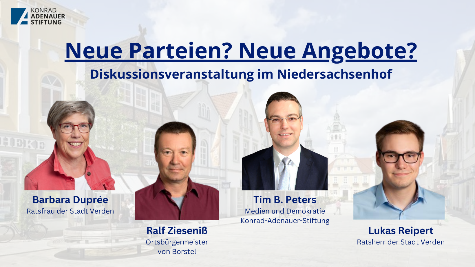 Die neuen Parteien argumentieren, dass sie eine Repräsentationslücke schließen und neue politische Angebote schaffen wollen. Doch gibt es eine solche Lücke wirklich? Werden akute Probleme und Themen von den älteren Parteien nicht ausreichend angegangen? Lösungsangebote falsch kommuniziert? Und welche Ziele und Visionen haben überhaupt die neuen Parteien?