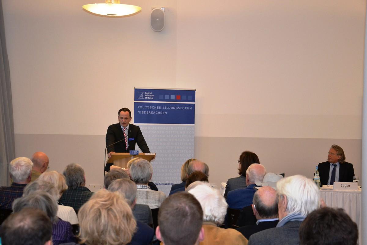 Christoph Bors, Landesbeauftragter der KAS, begrüßte zum Thema "America first? 111 Tage US-Präsident Donald Trump - Folgen und Perspektiven für das transatlantische Verhältnis"