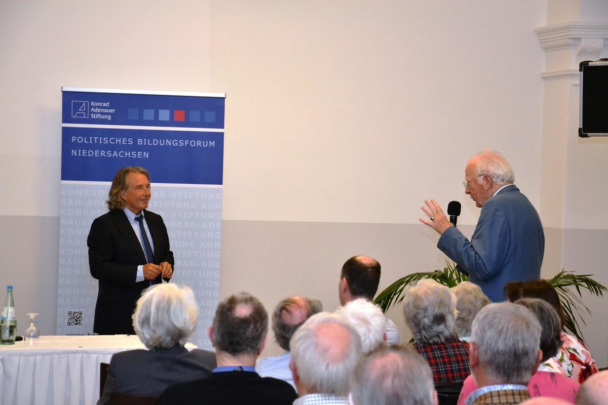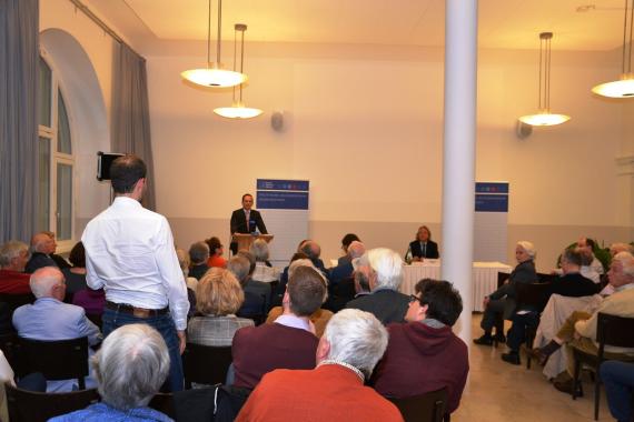 Die Fragen Teilnehmenden deckten anschließend das gesamte Politik-Spektrum ab: Atomwaffen, Außenhandel, Steuern, Personalpolitik, Bildungspolitik, Umgang mit Medien, etc.Alle Fragen beantwortete der Prof. Jäger ausführlich und anhand praktischer Beispiele.