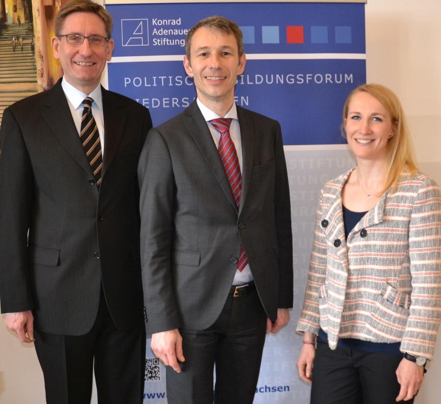 Tobias Wangermann skizzierte die politischen Prozesse der Digitalisierung und die Einbettung dieses komplexen Themenbereichs auf Bundesebene. Beispielsweise beschloss der Deutsche Bundestag im Jahr 2010 die Enquete-Kommission „Internet und digitale Gesellschaft“ bis April 2013 zur Untersuchung der Auswirkungen des Internets auf die Politik und Gesellschaft. Weitere Anpassungen vollzogen sich durch die Schaffung eines neuen Politikfeldes und durch die Vertretung der digitalen Agenda in drei Bundesministerien. Dass zugleich eine wirtschaftliche Notwendigkeit einer Reaktion auf die digitalen Entwicklungen besteht, zeigt auch die Bemühung um einen europäischen digitalen Binnenmarkt. Doch gerade kleine- und mittelständischen Unternehmen sehen die Digitalisierung als größte Herausforderung an, so das Ergebnis einer Bitcom-Umfrage von 2015. Etwa 35% der Wirtschaftsunternehmen haben Probleme bei der Umsetzung und 17% der befragten Unternehmen sehen ihre Zukunft im Wettbewerb gefährdet. Umso wichtiger sei daher die Unterstützung von Seiten der Politik, erklärte der Experte.