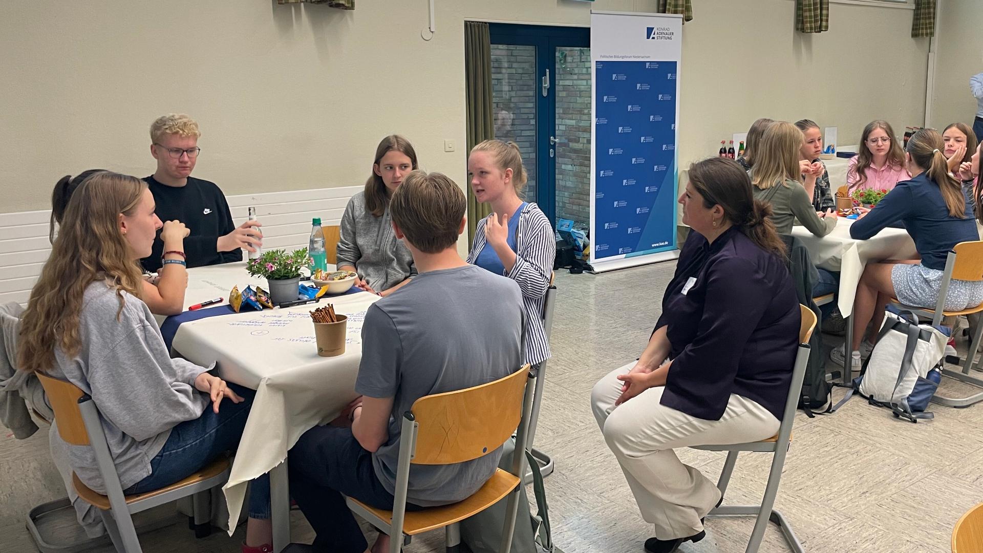 Im Rahmen der bundesweiten Kampagne ChancenZeit der Konrad-Adenauer-Stiftung diskutierten am 28. Juni 2023 rund einhundert Schülerinnen und Schüler im Gymnasium Großburgwedel über die Einführung eines verpflichtenden Gesellschaftsjahres.