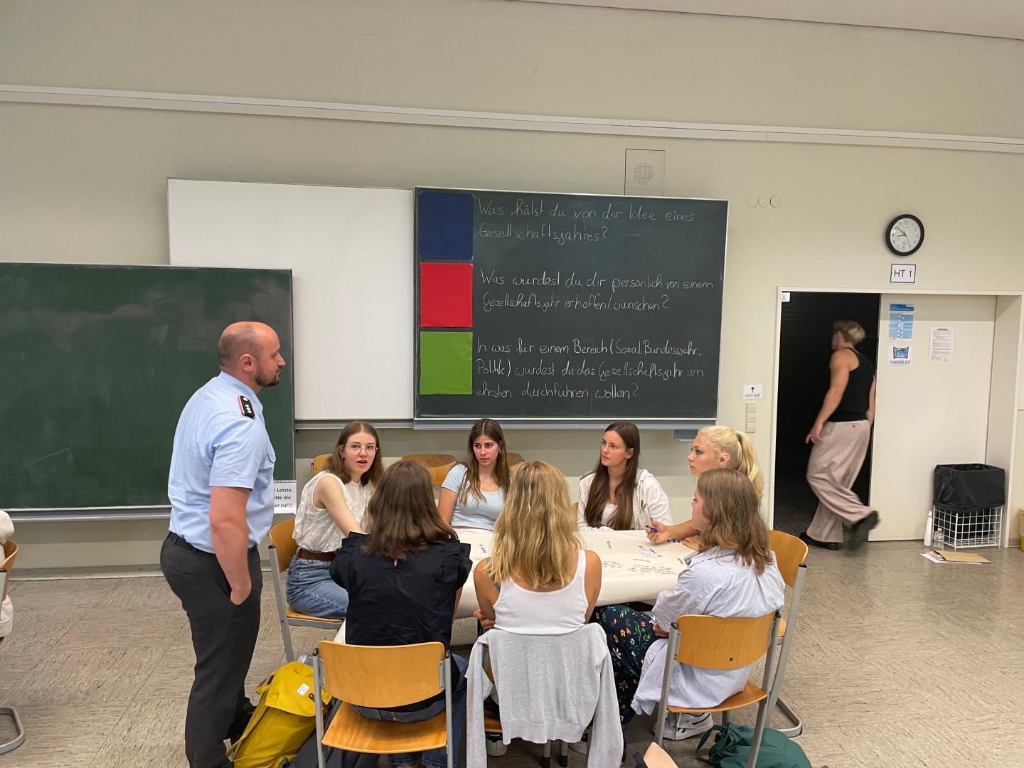 Hauptmann Bujar Rrustemi, Jugendoffizier der Bundeswehr, sprach sich hingegen deutlich für eine Verpflichtung junger Menschen aus. Ein Gesellschaftsjahr sei schon alleine deshalb gut, weil man in diesem Jahr mit ganz anderen Personen und sozialen Gruppen zusammentreffe, als man sonst die Möglichkeit gehabt hätte. Zudem würde ein Gesellschaftsjahr auch die Möglichkeit bieten, in einen neuen Tätigkeitsbereich reinschnuppern zu können und womöglich erste berufliche Erfahrungen zu sammeln.