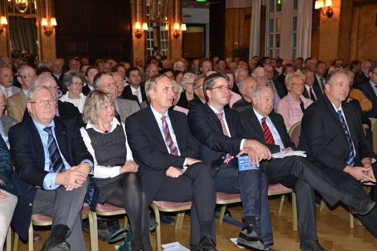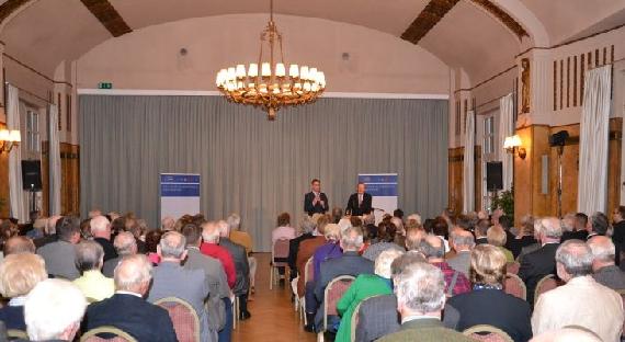 Er nannte plakative Beispiele aus seiner langjährigen Amtszeit als bayerischer Innenminister und machte anhand dessen deutlich, in welchem Maße die Gesellschaftsbereiche und somit die innere Sicherheit des Landes gefährdet ist. Schließlich sei aber die gemeinsame Leitkultur, zur Freude Becksteins sogar parteiübergreifend, positiv für Deutschland zu benennen. „Wir müssen nun alles tun, um unsere Grundwerte durchzusetzen“, fügte Günther Beckstein noch hinzu. Das Spannungsverhältnis zwischen Freiheit und Sicherheit sei in unserem deutschen Rechtsstaat eindeutig geregelt. Achtgeben müssten wir vor Überheblichkeit und gleichzeitig warnte er davor, die Augen vor den Problemen zu verschließen.