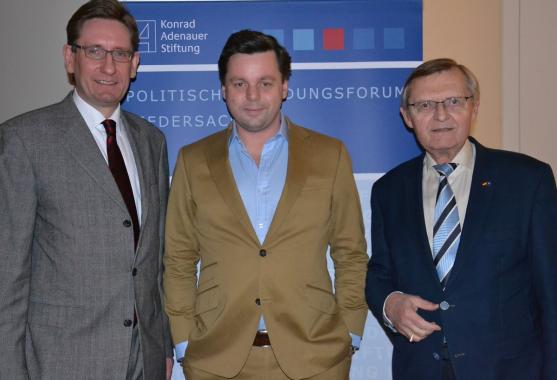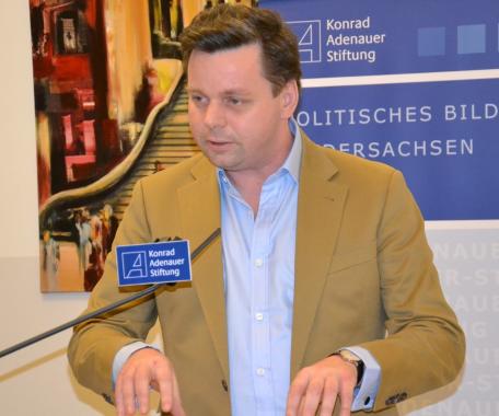 Dustin Dehéz, der seit 2006 dem Arbeitskreis „Junge Außenpolitiker“ der Konrad-Adenauer-Stiftung angehört und zwischen Deutschland und Ghana pendelt, kam in seinem Vortrag direkt auf die unentbehrlichen Bereiche der Vereinten Nationen zu sprechen und machte auf die herausragende Leistung des UNHCR seit Beginn der großen Flüchtlingsbewegung in Syrien aufmerksam. Weltweit seien etwa 60 Mio. Menschen auf der Flucht – eine Zahl mit dem höchsten Stand seit dem 2. Weltkrieg. Jedoch sei die offizielle Zahl der Flüchtlinge in den Statistiken kaum erfasst, so Dehéz, weil es sich dabei um die Binnenflüchtlinge handelt. Allein in Syrien werden derzeit ca. 4 Mio. Binnenvertriebe geschätzt. Weiterhin sei nicht zu verkennen, dass ein Großteil in die direkt benachbarten Länder des Konfliktherdes fliehe, womit die Unterorganisationen der Vereinten Nationen in Ländern wie Jordanien und dem Libanon bereits den meisten Menschen zu helfen versucht. „Das heißt die UNO ist in dieser Hinsicht unentbehrlich, weil sie uns einen Teil der Herausforderung im Libanon, in Jordanien, in der Türkei tatsächlich abnimmt, bei uns wäre die Situation deutlich dramatischer, wenn das nicht der Fall wäre“, so der Politikberater. Um jedoch die weitere Arbeit des UNHCR gewährleisten zu können, sei es nun umso wichtiger und richtig, dass auch die Bundesregierung eine finanzielle Aufstockung entschieden hat. Eine weitere wichtige Aufgabe erfüllt die UNO im Bereich des Klimawandels. Während die Bestätigung des Klimaziels für die westlichen Staaten kein Novum sei, hat die Organisation mit dem Zugeständnis von Ländern wie Indien oder China bereits viel erreicht.