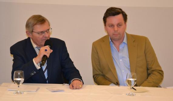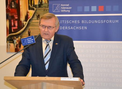 Zum Auftakt begrüßte Wilfried Lorenz MdB, Mitglied im Verteidigungsausschuss, das Publikum im Gartensaal des Neuen Rathauses. Die im Titel gestellte Frage nach der Unentbehrlichkeit der Vereinten Nationen bejahte der Bundestagsabgeordnete ohne zu zögern und führte seine Zustimmung mit einigen Beispielen aus. Der lange Weg vom Völkerbund zu den Vereinten Nationen führte nicht nur über die vielen Blauhelm-Missionen, sondern ebenso über Sanktionen gegen das humanitäre Völkerrecht. Auch gegenwärtig verhindert die Organisation Gräuel und ist gerade deshalb nicht entbehrlich. Als ein klassisches Beispiel für die Wirkungsweise der UNO geht Lorenz MdB auf die Ereignisse in Liberia ein. Ein Land, in dem viele Jahre Bürgerkrieg herrschte und es weit über 10.000 Blauhelme über einen langen Zeitraum hinweg schafften, anschließend die Sicherheitsverantwortung in die Hände der staatlichen Führung zu übergeben. Daher sei die Arbeit der Vereinten Nationen grundsätzlich in einem langfristigen Kontext zu betrachten. Neben den zahlreichen Missionen zur Wahrung des Friedens und der Stabilität, dürfe aber auch nicht vergessen werden, mit wie vielen Unterorganisationen die Vereinten Nationen sämtliche gesellschaftliche Bereiche abdecke: von Kultur, Bildung und Nahrung über Gesundheit, Gleichberechtigung und Umwelt. Unentbehrlich sei die Organisation vor allem deshalb, so der Bundestagsabgeordnete weiter, weil alle Staaten darin vertreten sind und – wenn auch in unterschiedlicher Weise – ihren Beitrag leisten und zusammen wirken. Deutschland müsse jedoch die Präsenz innerhalb der UNO verstärken, das hieße auf langfristige Sicht mehr Einsätze, mehr Material, mehr Soldaten und mehr Verteidigungsbudget. „Gut und richtig, das ist die UNO für mich, sie wird es auch immer bleiben“, so die abschließenden Worte von Wilfried Lorenz MdB.