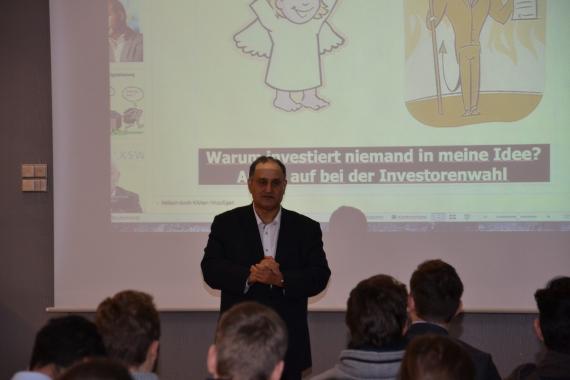 Ein Investor sei für einen Gründer viel mehr als nur ein Geldgeber, er bringe schließlich seine Erfahrungen und sein Netzwerk in die Zusammenarbeit ein. Daher sollten sich Gründer gut überlegen, wen sie ansprechen wollen und was ein potentieller Investor mitbringen sollte. Hubertz riet den Zuhörerinnen und Zuhörern, nicht den nächstbesten Investor zu nehmen, sondern gezielt eine Auswahl zu treffen. Besonders bei der Exit-Strategie, also die Strategie zur Realisierung des Gewinns aus einer Investition, müssten sich Gründer und Investor einig sein.