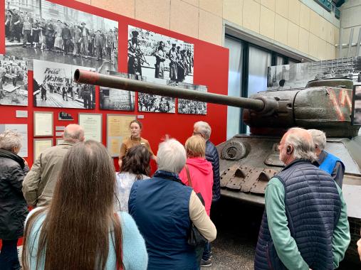 Nach einem Mittagessen in der Kunst- und Ausstellungshalle der Bundesrepublik Deutschland stand in unmittelbarer Nähe der Besuch des Hauses der Geschichte der Bundesrepublik Deutschland auf dem Programm. In einer 90-minütigen Führung wurden die Teilnehmer mitgenommen auf eine zeitgeschichtliche Reise beginnend in der Nachkriegszeit nach dem II. Weltkrieg. Es folgten verschiedene Stationen der Geschichte, die Gründung der Bundesrepublik über die Zeit der deutschen Teilung, die Friedliche Revolution, bis hin zur Gegenwart.