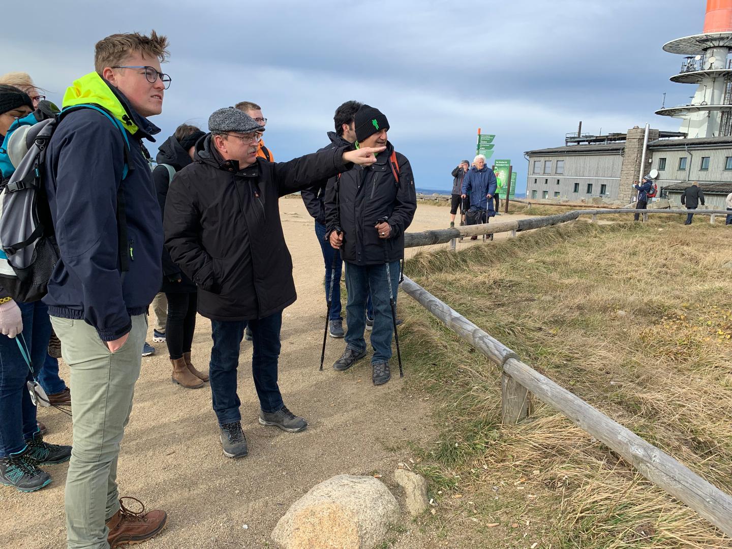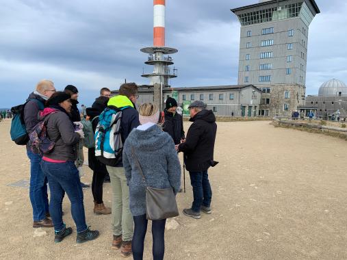 Bei bestem Wetter machte sich eine kleine Wandergruppe auf den "Goetheweg", um Bildung und Natur miteinander zu verbinden. Der Goetheweg ist einer der beliebtesten Wanderwege im Nationalpark Harz. Er ist nach dem deutschen Dichter und Denker Johann Wolfgang Goethe benannt und folgt seinem wahrscheinlichen Aufstieg von Torfhaus zum Brocken am 10. Dezember 1777. Der Brocken selbst ist mit 1141,2 m Höhe der höchste Berg im Mittelgebirge Harz, in Sachsen-Anhalt und in ganz Norddeutschland. Er befindet sich auf der Fläche der Bundesländer Niedersachsen und Sachsen-Anhalt. Zum Gipfel fährt seit 1899, mit Unterbrechung infolge der Deutschen Teilung, die schmalspurige Brockenbahn. Die seit den 1930er Jahren vorhandenen Sendeanlagen auf dem Brocken haben aufgrund der exponierten Lage im Hochharz eine große technische Reichweite und waren im Kalten Krieg von großer strategischer Bedeutung. Das Brockenhaus als moderne Informationseinrichtung des Nationalparks Harz befindet sich in der umgebauten „Stasi-Moschee“ einer ehemaligen Abhöreinrichtung des Ministeriums für Staatssicherheit.