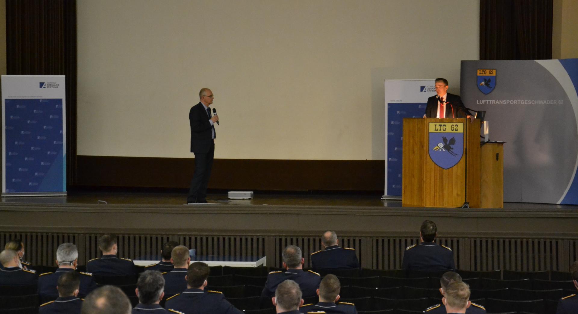 Nach einer kurzen Begrüßung der Teilnehmerinnen und Teilnehmer durch Geschwaderkommodore Oberst Christian John, führte Christoph Bors, Leiter des Politischen Bildungsforums Niedersachsen, in das Thema ein. In dem nachfolgenden Vortrag charakterisierte Andrey Gurkov zunächst seine eigene Haltung gegenüber Russland und Europa. „Ich habe mich immer als Brückenbauer verstanden“, so der Referent. Danach sprach er unter anderem über die Rolle Russlands in Afghanistan, im Konflikt mit Belarus und beim Thema Energieversorgung in Deutschland.