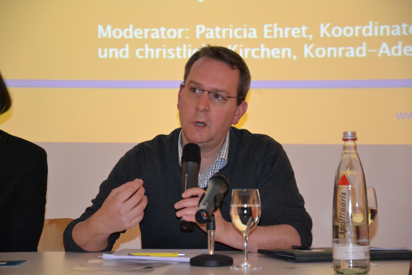 Nach dem Vortrag gab es eine Diskussionsrunde mit Dr. Yasemin El-Menouar, Dr. Gábor Lengyel, Rabbiner der „Liberalen jüdischen Gemeinde Hannover“ und Dr. René Mounajed, Schulleiter der Robert-Bosch-Gesamtschule in Hildesheim die durch Patricia Ehret, Koordinatorin für Religionspolitik und christliche Kirchen der Konrad-Adenauer-Stiftung moderiert wurde. Themen waren hierbei die Berichterstattung der Medien über einzelne Religion. Normales Leben habe keinen Nachrichtenwert und daher werden nur die Extreme in den Nachrichten gezeigt, die zu einer Bildung von Vorurteilen und Ängsten führen. Des Weiteren wurde über die religiöse Vielfalt im Schulalltag gesprochen. Schule ist ein Schmelztiegel vieler Religion, so Mounajed. Hier sei es wichtig, dass jeder religiöse Mitbürger zu seinen religiösen Standpunkten steht und dass diese nicht durch Änderung, wie Weihnachtsfest zum Winterfest, aufgeweicht werden. Jeder sollte seine Religion vertreten und sich offen für andere Glaubensrichtungen zeigen, bekräftigt auch Rabbi Lengyel. Als Beispiel brachte er hierbei seine Initiative des jüdisch-muslimischen Dialogs in Hannover. Gleichzeitig rief er dazu auf, dass es nach Anschlägen wie in Hanau nicht genug sei Sonntagsreden zu halten, gerade im Bezug auf antisemitische und antidemokratische Äußerungen reicht es nicht nur diese zu Verurteilen, es muss auch dagegen gehandelt werden. Dafür ist der Dialog und Aufklärungsarbeit an Schulen sehr wichtig. Frau El-Menouar thematisierte zudem, dass die Betrachtung auf einzelne Religionen und deren Anfeindungen eher Rückwärtsgewandt sei und dass es wichtiger sei den Ist-Zustand des religiösen Lebens zu betrachten. Zudem sind Religionen oft problematisch, so Rabbi Lengyel, da es neben den schönen Seiten auch oft extreme Texte als Quellen des Glaubens gebe, diese müssen aus der heutigen Perspektive interpretiert werden und nicht wortwörtlich genommen werden. Teilweise seien diese Texte auch nicht mehr zeitgemäß und können nicht mehr als Glaubensgrundlage einer pluralen Glaubensgemeinschaft dienen.
