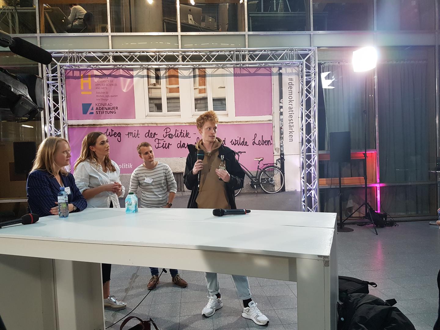 Studenten 6 Thesen für die Politik aufgestellt. Forderungen der Studierenden waren u. a., dass die Sprache der Politiker, die verständlich für alle Bürger sein müsse, dass nicht über, sondern mit der jungen Generation gesprochen werden sollte, ebenso prangerten sie an, dass Politiker Ecken und Kanten haben sollten und sich volksnah präsentieren müssten. Der CDU-Fraktionsvorsitzende im Niedersächsischen Landtag Dirk Toepffer plädierte dafür, dass Politiker, wie andere Berufsgruppen auch, ihren Fachjargon benötigen, damit sie ihrer Arbeit schnell und effizient nachgehen können. Dabei sei es jedoch wichtig, dass Politiker zielgruppenadäquat sprechen. Zum Abschluss sprach Diana Kinnert über ihre Erfahrungen aus der Zeit als Mitarbeiterin im Bundestag und plädierte dafür, dass Politiker Kommunikation auf Augenhöhe betreiben sollen und nicht nur die Sprache, sondern auch die Inhalte auf die jeweilige Gruppe angepasst werden müssen.