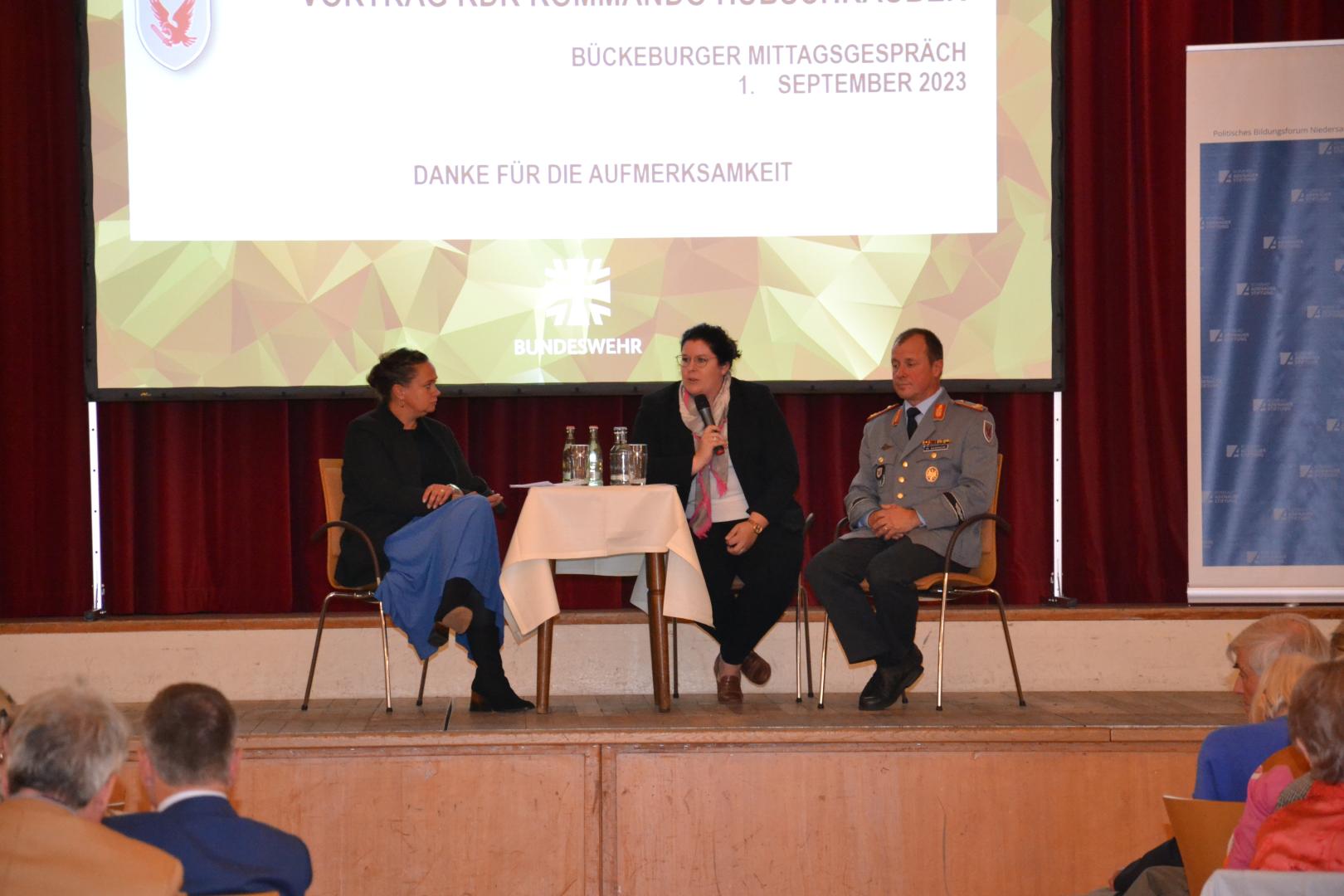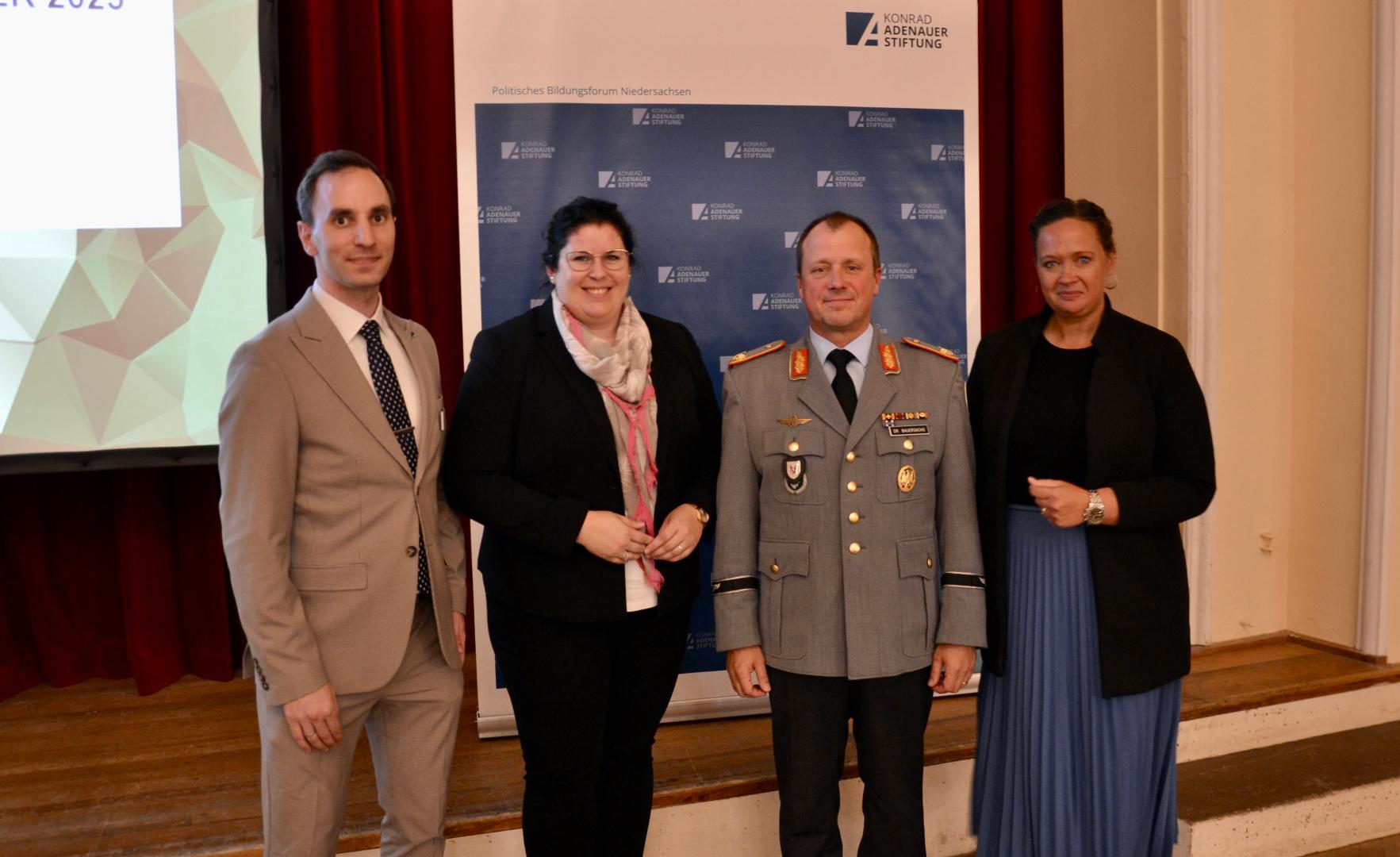 Am 1. September 2023 war es so weit und eine durch Corona ruhende Tradition der Konrad-Adenauer-Stiftung wurde wieder aufgenommen. Einmal im Jahr lädt das Politische Bildungsforum Niedersachsen in Bückeburg zu Mittag dazu ein, über ein aktuelles Politisches Thema ins Gespräch zu kommen. In diesem Jahr fand die Veranstaltung unter dem Titel „Stehen wir vor einer Zeitenwende in der nationalen Sicherheit?“ statt. Nach kurzen Grußworten durch Gereon Kuriewicz, Referent des Politischen Bildungsforums Niedersachsen, übernahm Colette Tiemann MdL, Beauftragte für die Bundeswehr der CDU-Landtagsfraktion, die Einführung in die Thematik wie auch die weitere Moderation.