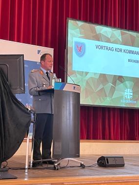 Nach Colette Tiemanns Einführung begann Brigadegeneral Dr. Volker Bauersachs, Hauptreferent des Mittagsgespräches, mit seinem Vortrag. Lange Zeit habe der Glaube, dass man „von Freunden umzingelt“ sei die Sicherheitspolitik in Deutschland bestimmt, so Dr. Bauersachs. Ein Krieg in Europa wurde als unrealistisch angesehen und der Schwerpunkt der Bundeswehr lag nicht in der eigenen Landes- und Bündnisverteidigung. Bauersachs zeichnete die verschiedenen Schwerpunkte der Landesstreitkräfte in seinem Vortrag eindrucksvoll nach. Zu Zeiten des Kalten Krieges um 1985 lag der Schwerpunkt der Landesstreitkräfte in der Landesverteidigung. Mit Beendigung dieses Krieges verschob sich der Fokus mehr und mehr in Richtung internationales Krisenmanagement und nationale Katastrophenhilfe. Die Aufgabe der Landesverteidigung wurde als weniger dringlich empfunden und gelangte in den Hintergrund. Erst mit dem Beginn des russisch-ukrainischen Krieges änderte sich das und seit 2022 wieder mehr Ressourcen in die Landes- und Bündnisverteidigung investiert. Der Überfall Russlands unterstreiche einmal mehr die Relevanz von Landstreitkräften in der heutigen Zeit. Auch Bauersachs unterstrich die großen Probleme, die es im Punkto Personalgewinnung gibt. Als Beispiel führt er an, dass in seinem Standort letztes Jahr nur ein Bruchteil der Pilotenstellen besetzt werden konnte und dies aufgrund zu hoher Hürden im Bewerbungsprozess. Er wolle in Zukunft tatkräftig daran mitwirken, dass solche Probleme zumindest im eigenen Wirkungsbereich abnehmen. Nach den Ausführungen von Brigadegeneral Dr. Volker Bauersachs sprachen er, Colette Thiemann MdL und Lena Düpont MdEP über die verschiedenen Probleme der Bundeswehr und mögliche Lösungsansätze. Zudem beantworteten sie auch Fragen aus dem Publikum. Thema des Gesprächs war u. a. die mögliche Wiedereinführung der Wehrpflicht und die Bedeutung des Engagements jedes Einzelnen. Zum Abschluss der Veranstaltung wurde ein Blick in die Zukunft der Bundeswehr gewagt. Alle drei Gesprächsteilnehmer zeigten sich optimistisch, dass, wenn man der Bundeswehr mehr Aufmerksamkeit wage, auch die zukünftige Landes- und Bündnisverteidigungsmöglichkeit wiederhergestellt werden kann.