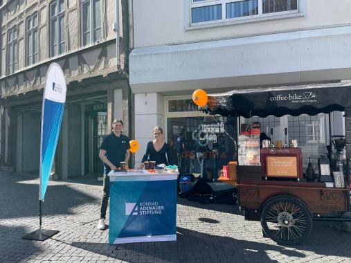 Zum Internationalen Tag der Demokratie am 15. September war das Team des Politischen Bildungsforums Niedersachsen der Konrad-Adenauer-Stiftung mitten in der Braunschweiger Innenstadt unterwegs – mit einem Coffee-Bike und einer klaren Mission: ins Gespräch kommen!