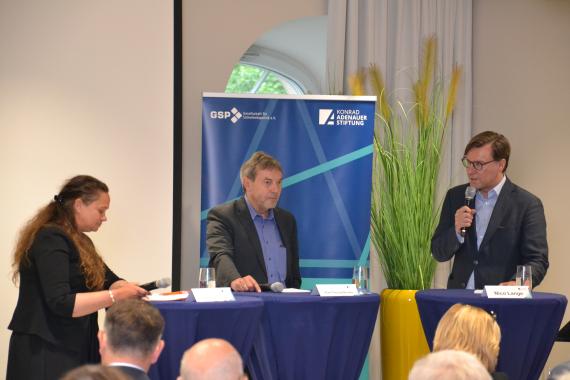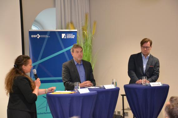 Nach Eröffnung und Begrüßung durch die Gastgeber, den Landesbeauftragten Christoph Bors, sowie Peter Radig, Vorsitzender der GSP Niedersachsen/Bremen, begann die Colette Thiemann MdL mit einer thematischen Einführung zu aktuellen sicherheitspolitsichen Herausforderungen für Deutschland. Colette Thiemann ist die Beauftragte für die Bundeswehr der CDU-Landtagsfraktion und moderierte zudem die Diskussionsrunde.