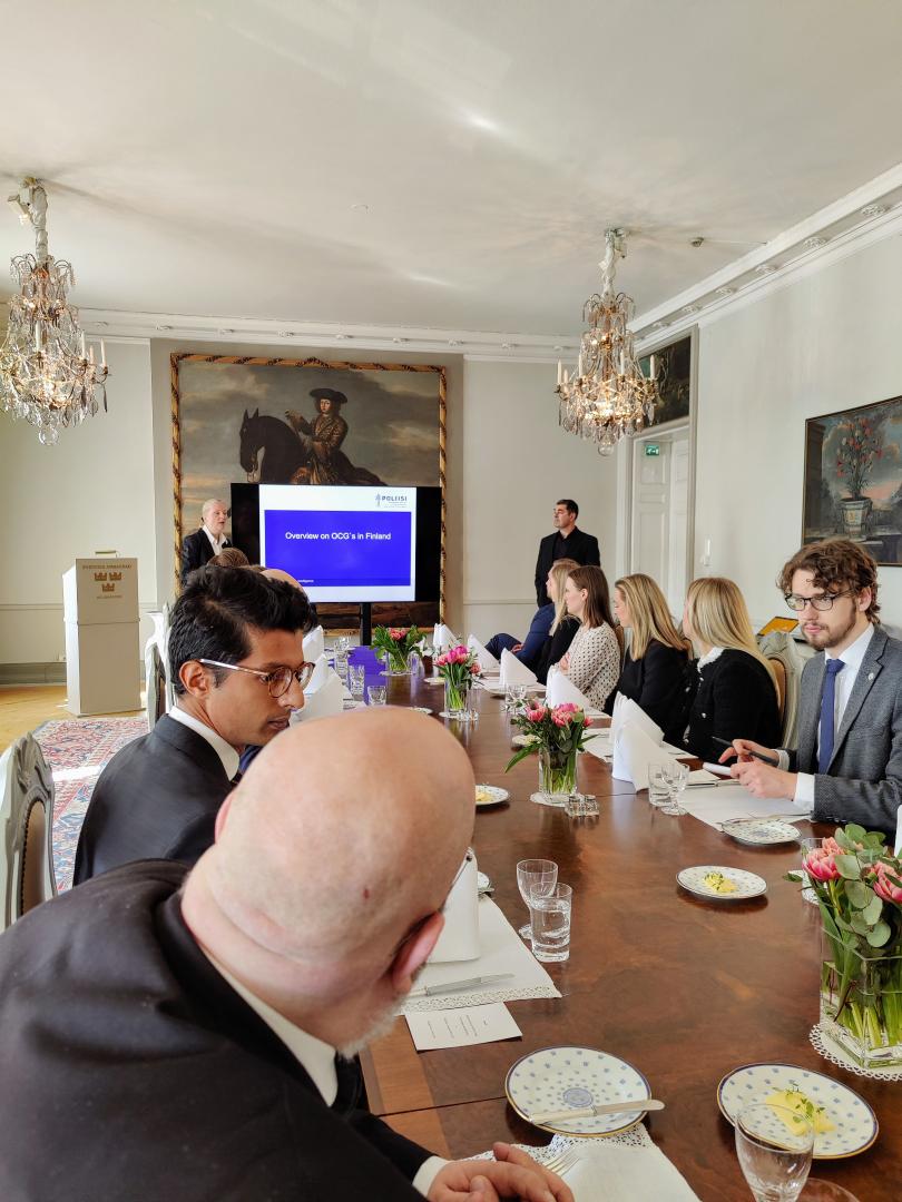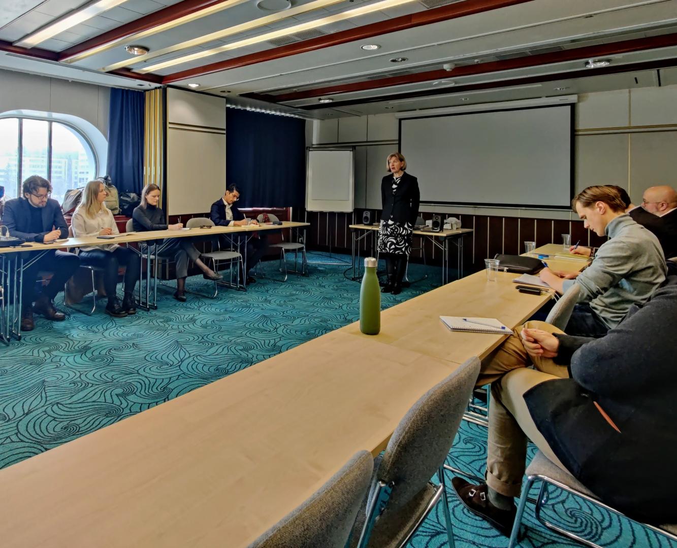 Arriving in Helsinki on Thursday morning, the 31st of March, the group was welcomed to the Swedish embassy to Helsinki by ambassador Nicola Clase, with Christer Ahlgren, Head of Intelligence at the Finnish National Police giving a presentation about the current state of organized crime in Finland. Following the lunch and lecture at the Embassy, the day’s second visit was at the Finnish Ministry of Defense, where defense minister Antti Kaikkonen (the Center Party) held a speech about the current state of relations between Finland and NATO. After finishing the visit at the Defensse Ministry, the group visited the nearby European Center of Excellence for Countering Hybrid Threats (Hybrid CoE), where the group was presented some examples of the current state of information warfare operations in Europe. After checking in to the hotel, the first day in Helsinki ended with a dinner and dinner lecture at Svenska Klubben by Professor of History at the University of Helsinki Henrik Meinander, who spoke about the modern geopolitical history of Finland. Following Professor Meinander’s lecture, Susanna Ginman, head political editor of the Swedish-language daily newspaper Hufvudstadsbladet, spoke about the current political situation in Finland.