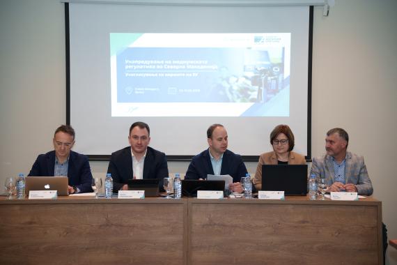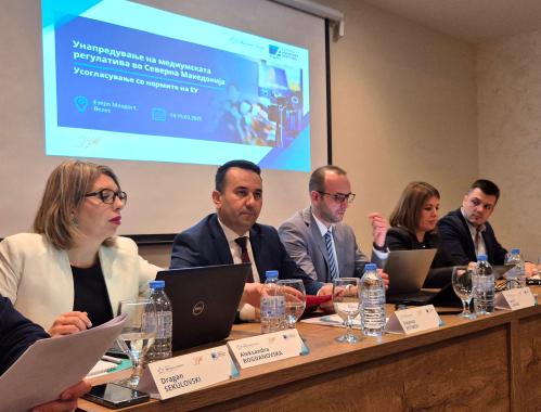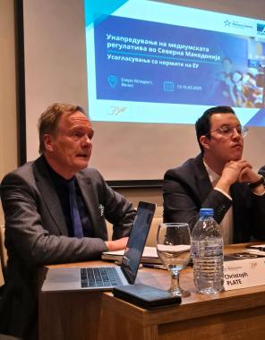 Neben Journalistinnen, Journalisten und Medienexpertinnen und -experten nahmen auch Stefan Andonovski, Minister für digitale Transformation, Zoran Ljutkov, Minister für Kultur und Tourismus, Dajanco Eftimov, Staatssekretär im Justizministerium, sowie Vertreterinnen und Vertreter der Medienregulierungsbehörde an der Veranstaltung teil.