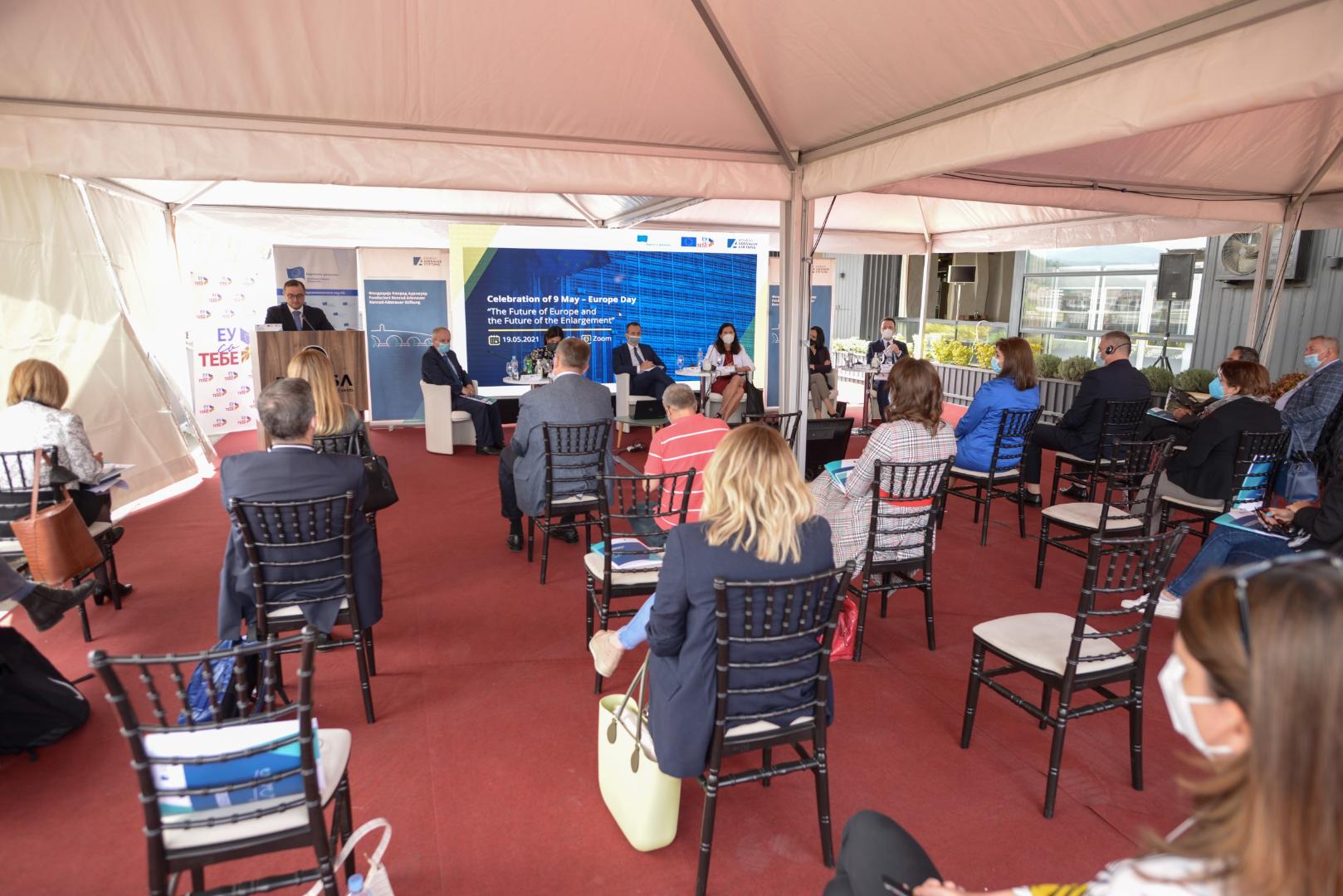 Die Diskussion wurde von der Vorsitzenden der Europäischen Bewegung Mileva Gjurovska eröffnet. In ihrer Begrüßungsrede betonte sie, die EU-Integration müsse vorangetrieben werden. Der Balkan sei kein peripheres Gebiet, sondern gehöre zum Projekt eines vereinigten Europas dazu. Sie führte weiterhin aus, dass die Europäische Bewegung in Nordmazedonien in diesem Jahr ihr dreißigjähriges Bestehen feiert.