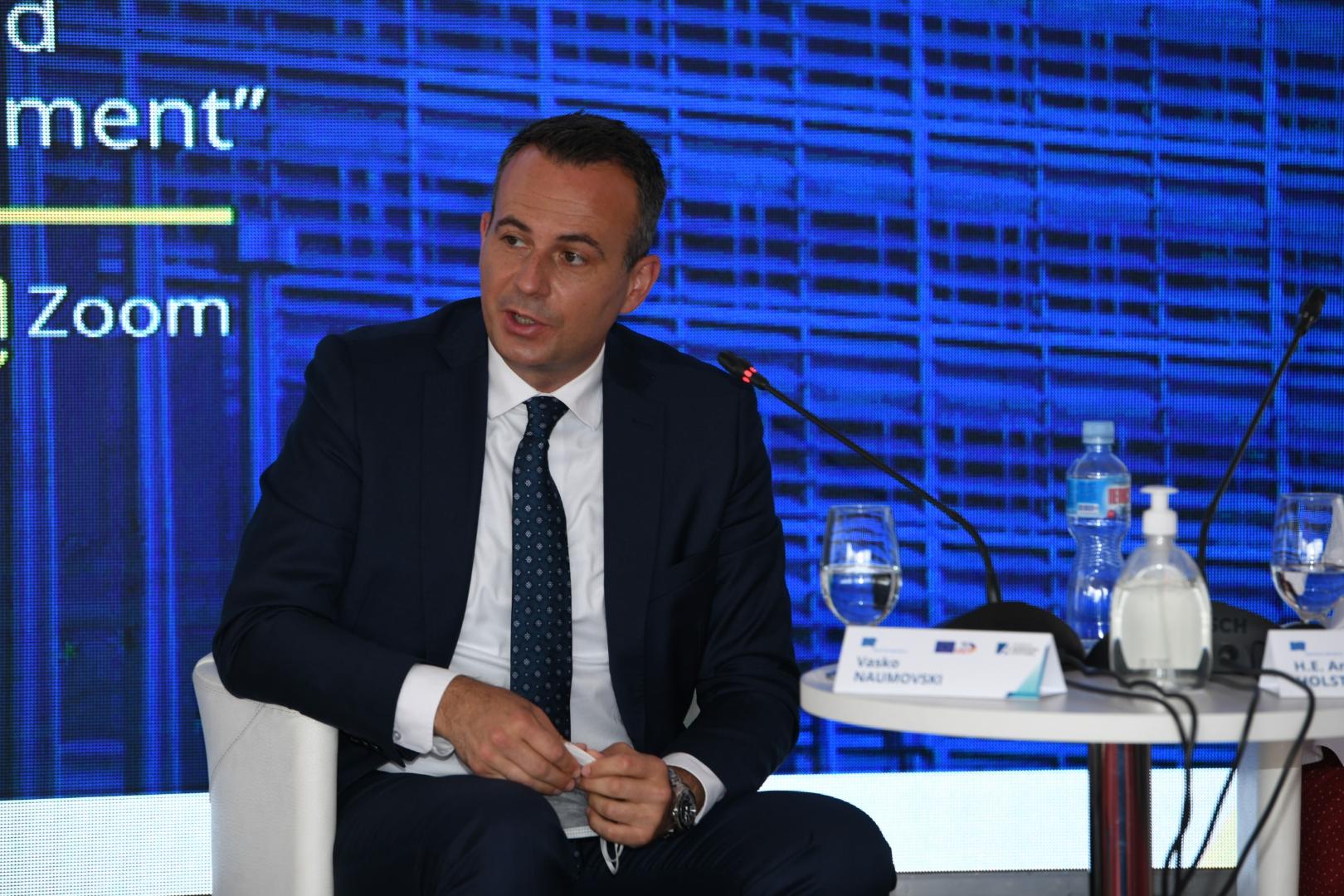 Moderator Vasko Naumovski, ehemaliger Stellvertretender Premierminister für Europäische Angelegenheiten, erinnerte daran, dass die KAS in den letzten zwanzig Jahren den Prozess der EU-Integration Nordmazedoniens stets unterstützt hat. Die Beitrittsverhandlungen beschrieb er als einen Weg mit vielen Hürden, von dem das Land aber nicht abkommen dürfe.