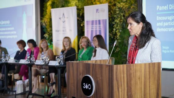 “Im Land gibt es 43 weibliche Abgeordnete. Wir können uns brüsten, dass wir in Bezug auf die Beteiligung von Frauen im Parlament der führende Staat in Europa sind. Dies können wir jedoch nicht auch von Frauen in Bürgermeisterämtern sagen, von denen es nur zwei gibt. Analysen besagen, dass es bei einem höheren Frauenanteil zu einer Veränderung der Wahrnehmung komme, welche für die Gesellschaft einen Gewinn darstellt sowie größere demokratische und soziale Freiheiten bringt. Wir müssen Partner der Männer sein und nicht deren Gegner”, führte die Abgeordnete Zhaklina Peshevska aus.