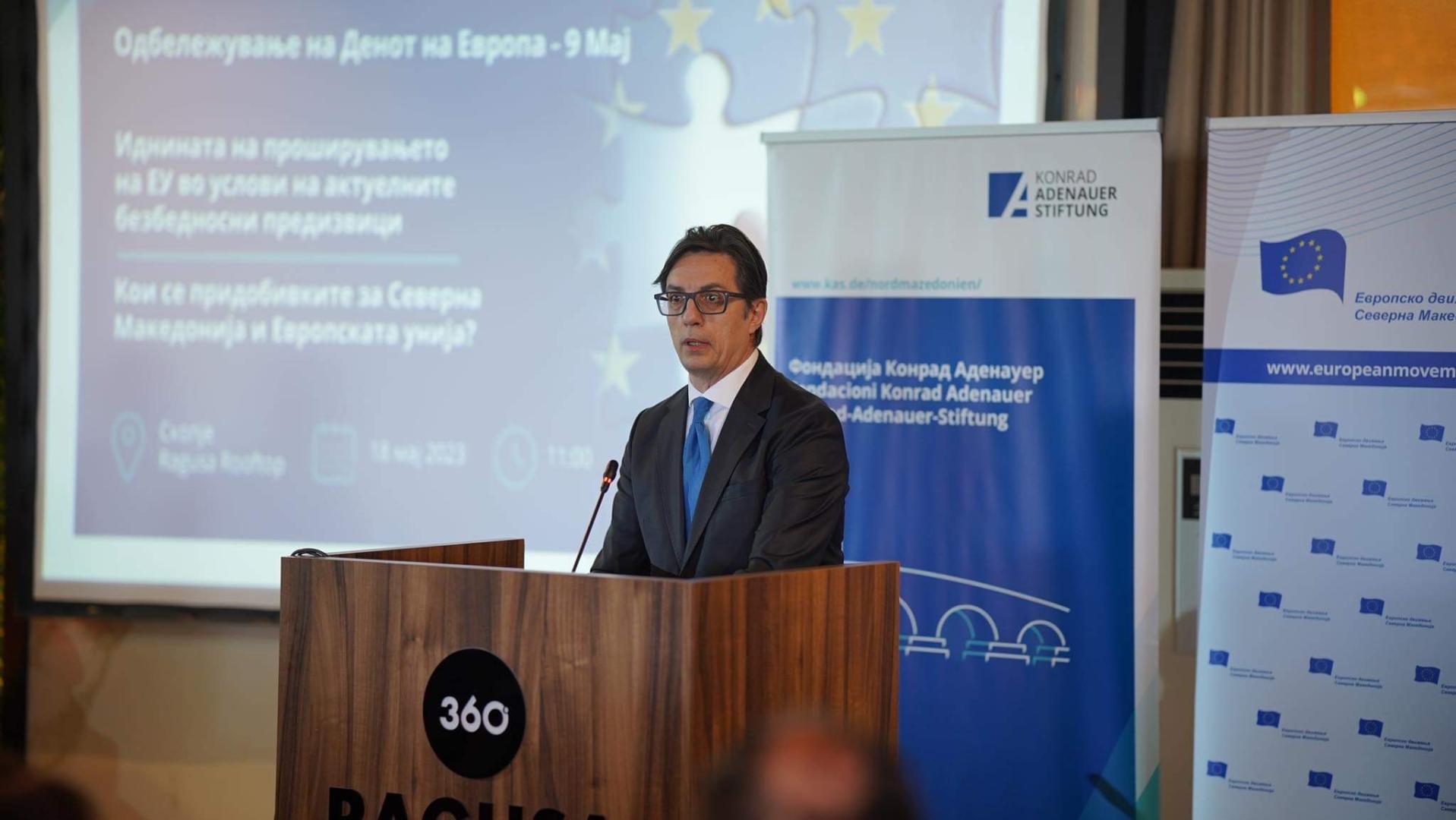 Staatspräsident Stevo Pendarovski verwies in seinem Grußwort auf den altbekannten Spruch der Europäischen Union, nämlich die Erweiterungsmüdigkeit, und fügte hinzu, dass es politisch ungerechtfertigt und unverantwortlich sei, dass dieses Mantra von politischen Vertretern, die für die Arbeit für eine Verbesserung der Lage und des Lebens der Bürger bezahlt werden, verwendet wird.