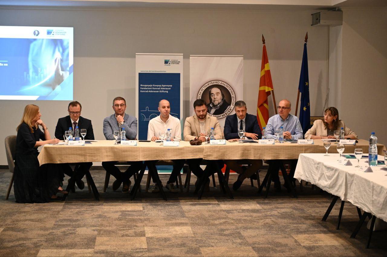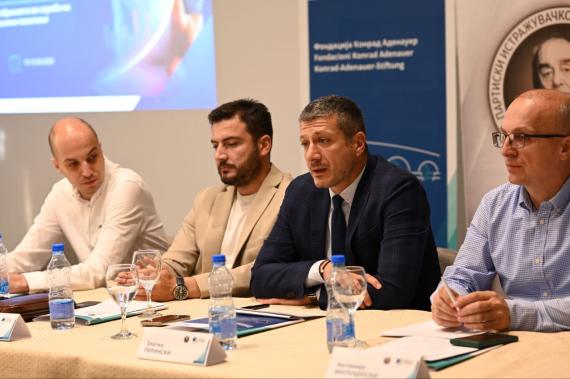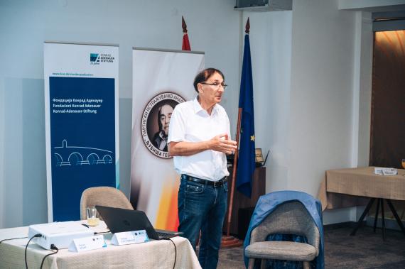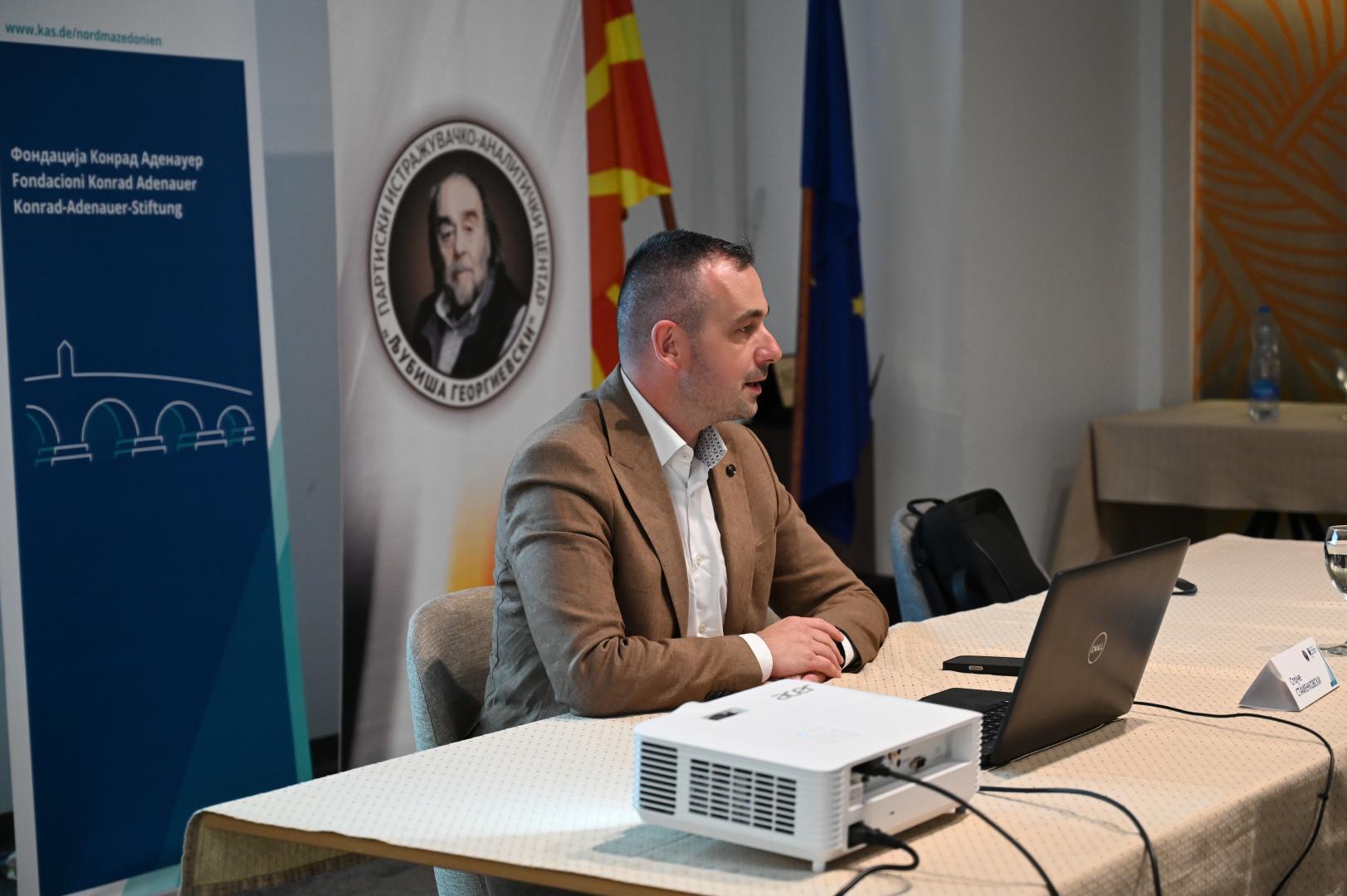 Svetislav Vasev, Leiter des Partei-Forschungs- und Analysezentrums „Ljubisha Georgievski“, begrüßte die Teilnehmerinnen und Teilnehmer, dankte der KAS für die Organisation der Veranstaltung und hob die gute Zusammenarbeit zwischen der Stiftung, der Partei und dem Analysezentrum hervor.