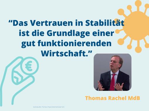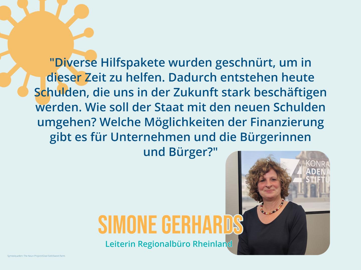 Es sei wichtig, die Staatsverschuldung zu reduzieren, damit „die nachfolgenden Generationen nicht zwei Mal zahlen: Einmal jetzt durch Einbußen der Lebensqualität und in 10 oder 15 Jahren dann durch Steuern – das muss jetzt angepackt werden.“ Eine wichtige Rolle spielt die Europäische Zentralbank (EZB), die für die Preisstabilität des Euros sorgt und den Leitzins festlegt – dieser sei gerade ein Negativzins. Das habe Auswirkungen auf viele Berieche wie die Preissteigerung bei Eigenheimen und die Verteuerung der Altersvorsorge – diese sei außerdem ein Thema, auf das Corona starken Einfluss nehme. Denn viele der Anlagemodelle seien gerade eher für Menschen, die bereits Vermögen hätten, Altersvorsorge werde immer unattraktiver. Weitere Aspekte, die in Zukunft relevant würden, seien unter anderem Digitalisierung und Ökologie.