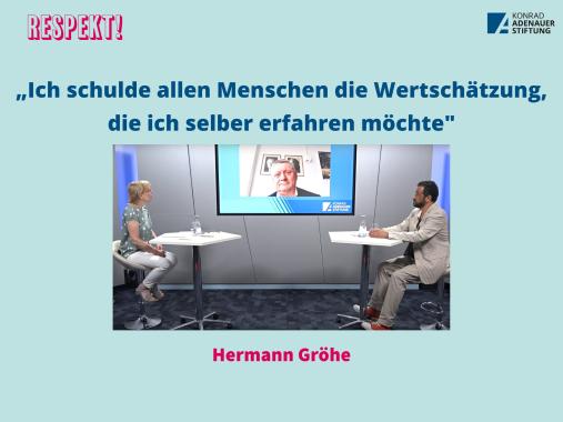 Der Schirmherr der Veranstaltung, Hermann Gröhe MdB, spricht sich für mehr Sensibilität aus. Respekt beginne damit, sich in die Schuhe des anderen zu stellen: „Ich schulde allen Menschen die Wertschätzung, die ich selber erfahren möchte." Was die Sprache und Begriffe angehe, sei es ein wichtiger Ansatz, sich selbst damit zu beschäftigen, sagt Jung: „Wir möchten anderen mit Respekt begegnen und sie nicht verletzen und beleidigen.“ Auch bei einer gendergerechten Sprache sei das wichtig: Es gehe darum, Gruppen sichtbar zu machen. Gröhe sagt, es sei wichtig, bei diesem Thema alle mitzunehmen und zuzuhören – es dürfe kein Elitenprojekt werden. Die Intellektuellen spielten jedoch eine wichtige Rolle in dem Prozess, sagt Jung – durch sie finde der Anstoß statt: „Es darf aber nicht an der Stelle stehenbleiben.“ Man brauche natürlich Zeit: „Ich finde es wichtig, sich zu öffnen – nicht nur für neue Laute, sondern für das, was dahintersteckt.“