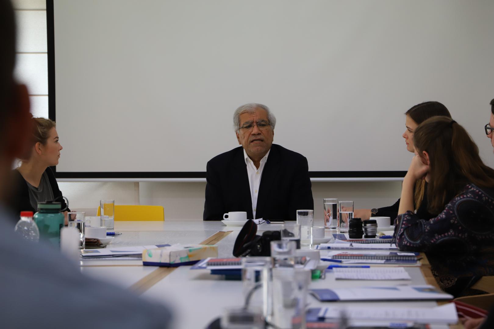 Später traf sich die Gruppe mit dem Direktor des Palestinian Center for Policy and Survey Research, Dr. Khalil Shikaki. Er präsentierte die wichtigsten Ergebnisse seiner Umfragen, um der Gruppe empirische Belege zur öffentlichen Wahrnehmung und deren Folgerungen für politische Entscheidungsträger zu liefern. Auf Grundlage der Daten diskutierte Shikaki dann die künftigen Entwicklungen in der Region.