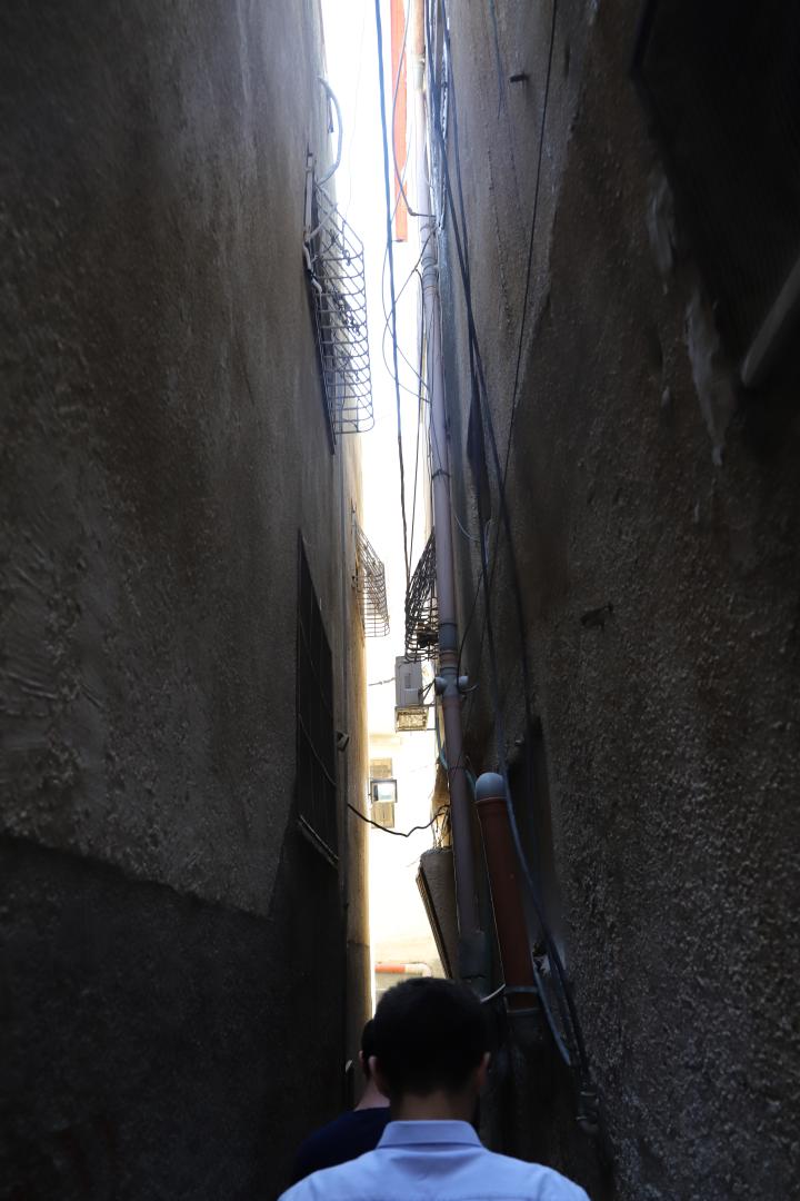 Das Programm des nächsten Tages wurde in Nablus selbst fortgesetzt, einer der ältesten Städte im Westjordanland. Zusammen mit unserem Partner Reform, der Palästinensischen Vereinigung für Empowerment und lokale Entwicklung, besuchten wir als erstes das Balata-Flüchtlingslager, das größte und bevölkerungsreichste Camp in den Palästinensischen Gebieten. Wir hatten die Gelegenheit mit dem Vorstandsvorsitzenden von Balata, Tayseer Naserallah, zu sprechen, der uns einen Einblick in die schlimmen Bedingungen im Lager gab, in denen Gewalt, mangelnde Privatsphäre, soziale Unruhen, mangelnde Bildung und Arbeitslosigkeit allgegenwärtig sind. Anschließend machten wir eine kleine Tour durch die engen Gassen von Balata und besuchten das Yafa-Kulturzentrum, in dem die Bewohner des Lagers psychologische Hilfe erhalten und einen Raum finden, um ihre oft traumatische Erlebnisse zu thematisieren.