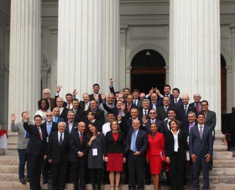 Vor der Aussprache und Wahl richteten sich die chilenische Präsidentin Michelle Bachelet, der frühere Präsident des Andenlandes, Eduardo Frei Ruiz-Tagle, und die Senatorin und Parteichefin der chilenischen Christdemokratie Carolina Goic an die Gäste. Präsidentin Michelle Bachelet ging in ihrer Rede auf die bisherigen Erfolge der Regierung ein, mahnte aber gleichzeitig die Anwesenden, dass sich ihre Land und der gesamte lateinamerikanische Kontinent in schwierigen Zeiten befänden. Deshalb sei es von höchster Priorität, in diesen herausfordernden Zeiten den richtigen Weg zu erkennen. Diesbezüglich wies sie die Anwesenden zu Kooperation und effektiver Zusammenarbeit auf. Lobende Worte gingen an die Konrad-Adenauer-Stiftung e.V. und die ODCA, denn durch sie würden Kooperationen und Dialoge von den verschiedenen christdemokratischen Parteien gefördert.