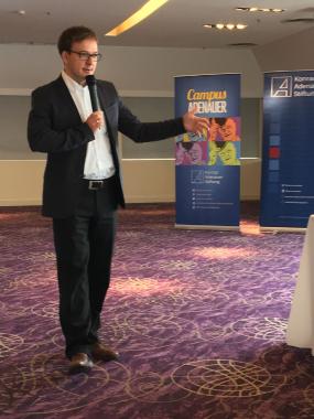 Mit herzlichen Worten begrüßte auch Olaf Jacob als Leiter der Konrad-Adenauer-Stiftung e.V. in Argentinien die Teilnehmer der Region. Es sei eine Ehre, die Bürgermeister und Gemeindevertreter des vom Regionalprogramm Politische Parteien und Demokratieförderung organisierten Campus Adenauer gerade in der wunderschönen Provinz Entre Rios willkommen zu heißen. In der Arbeit mit kommunalen Vertretern ergänzten sich Länderprojekte und Regionalprogramme der Stiftung in ihrer Arbeit in Lateinamerika. Jacob unterstrich, dass die KAS in Argentinien als Dialograum zwischen der regierenden Koalition Cambiemos und den verantwortlichen Teilen des Peronismus wirken möchte.