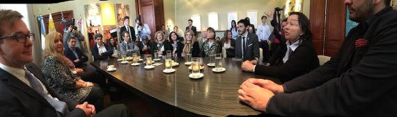 Als drittes Beispiel guter kommunaler Praktiken stellte der stellvertretende Landrat die effektive KFZ-Zulassungsstelle des Landkreises Fuldas vor. Durch ein neues Großraumbüro und die komplette Digitalisierung der Akten konnten stundenlange Wartezeiten auf vier Minuten reduziert werden. Die Erweiterung der Öffnungszeiten war ein weiterer Schritt in Richtung einer modernen und dienstleistungsorientierten Verwaltung. „Das war ein schwieriger Veränderungsprozess für die Verwaltungsmitarbeiter. Mit einem klaren Ziel und einer guten Beteiligung der Mitarbeiter haben wir es allerdings innerhalb von zwei Jahren geschafft“, erklärte Schmitt. Die anwesenden Bürgermeister und Gemeindevertreter wollten in der anschließenden Diskussion wiederum sehr viele Details zum deutschen System erfahren: sei es die Bezahlung von Beamten, die Inklusion von Behinderten oder der Kulturwandel einer Abteilung.