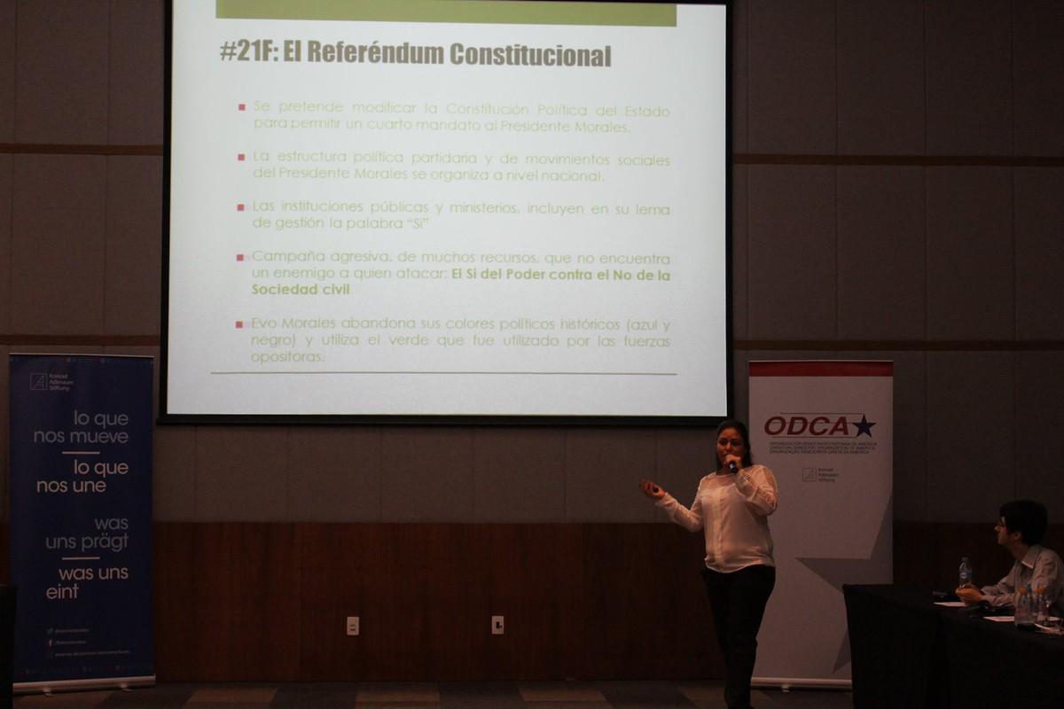 Auch Maria Lourdes Landivar, Senatorin der Democratas in Bolivien, erläuterte ihre Erfahrungen mit dem Populismus in ihrem Land. Nachdem Evo Morales 2005 gewählt wurde, sei es zur totalen Konzentration der Macht gekommen und politische Freiheiten Stück für Stück reduziert worden. Einige Belege, die María Lourdes Landivar dafür anführte sind: politische Verfolgung der Opposition, Politisierung der Justiz, mangelnde Gewaltenteilung und Pressefreiheit sowie fehlender Schutz der Eigentumsrechte. Auch der populistische Stil der Partei sei zunehmend problematisch. Die Senatorin beschrieb in diesem Zusammenhang besonders die Stilisierung des „inneren Feindes“, eines der unabdingbaren Instrumente des Populisten, die sich in diesem Fall auf die Opposition richtete, die eine Strategie der Autonomie und Öffnung verfolgte. Im Zuge des Referendums zur Verfassungsänderung 2016 trug die extrem aufwendige Kampagne der Regierung allerdings keine Früchte. Morales verlor seine Glaubwürdigkeit als seine Person mit zwei Korruptionsskandalen, dem Fall Zapato und dem Fondo Indigena, in Verbindung gebracht wurde. Dazu kam die Wirksamkeit der Kampagne für das NO, die vor allem auf Bürgerplattformen und die bolivianische Gesellschaft an sich ausgerichtet gewesen sei und nicht auf einzelne Oppositionskandidaten. Auf diese Weise hätte die Regierung nicht auf einen Feind reagieren können, weil die Bürger schlichtweg nicht angreifbar waren. „Nie zuvor haben außerdem die sozialen Netzwerke eine derart große Rolle in einer politischen Kampagne gespielt.“ Die Mobilisierung sei enorm gewesen und die Bolivianer konnten sich so als Gemeinschaft für die Demokratie durchsetzen. Den Parteien sei vor allem die Rolle als Schiedsrichter zugekommen, die ihre Kanäle zur Verfügung stellten und gleichzeitig den ordnungsgemäßen Ablauf der Wahlen garantierten. „Nun ist die Aufgabe politische Alternativen aufzubauen, um Bolivien auf die Wahlen 2019 vorzubereiten.“ Es brauche einen neuen demokratischen Diskurs, um auf den Populismus reagieren zu können, dabei müsse besonders auf Inklusion geachtet werden.