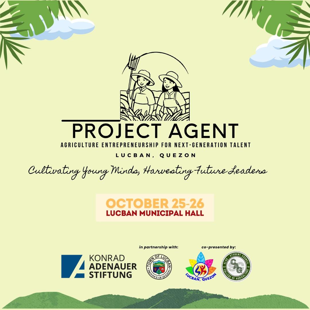 Project AgENT: Agriculture Entrepreneurship for Next-Generation Talent will implement its project on October 25 and 26 in Lucban, Quezon. The program intends to empower Lucban youth with the skills and knowledge to become successful agripreneurs, address challenges such as food security, and promote local food production. The event is in partnership with the local government unit of Lucban, Sangguniang Kabataan of Lucban, and the Southern Luzon State University College of Agriculture Student Council.