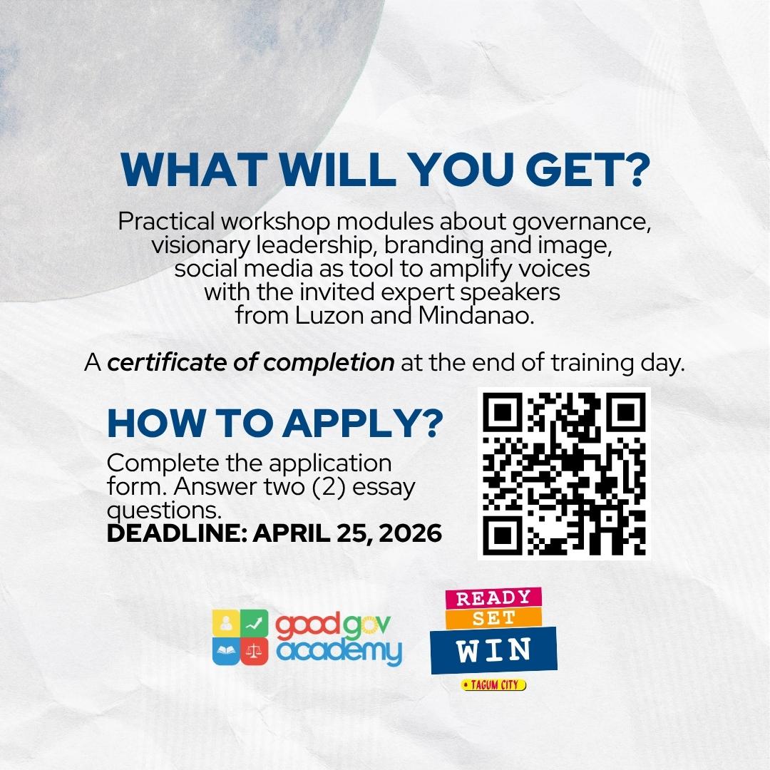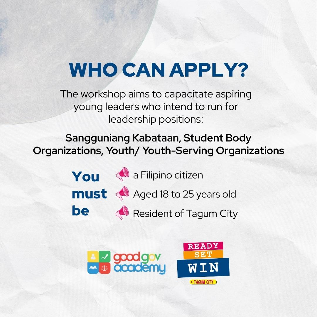 Calling all youth leaders in Tagum City! Applications are now open for GoodGov Academy x Ready, Set, Win!