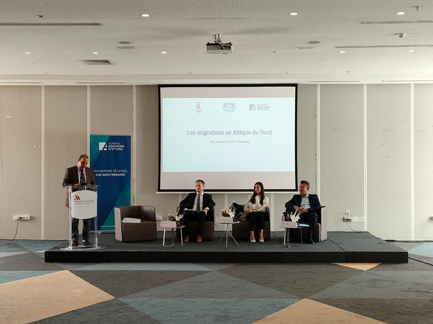 The conference aimed to present our conducted study entitled "Migration in North Africa: an uncomfortable position between Sub-Saharan Africa and Europe”. Professor Hassen Boubekri from Tunisia and Professor Mehdi Lahlou from Morocco, who co-authored the study, presented its main findings. The other two panels tackled the conditions for an organized and peaceful migration from North Africa to Europe and how to promote South-South migration.