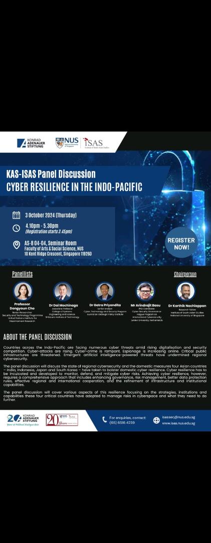The KAS-ISAS workshop ‘Cyber Resilience in the Indo-Pacific’ will cover how four Asian countries–India, Indonesia, Japan and South Korea – are faring with respect to cyber resilience at home and