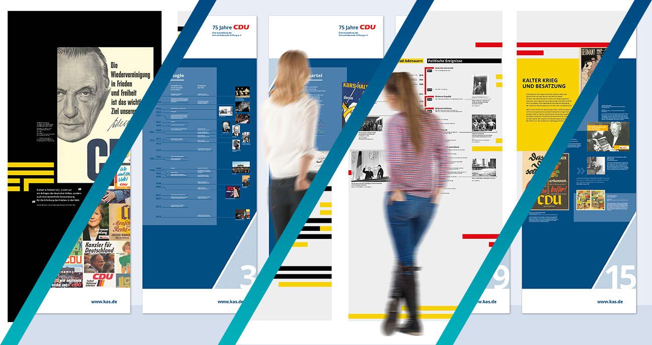 Die Ausstellung zeigt die 75jährige Geschichte der CDU. Dabei zeichnet die Ausstellung zunächst die Entwicklung von den ersten regionalen Gründungen zur großen Volkspartei nach und führt dann weiter bis in die Gegenwart. Dabei wird auf politische Erfolge ebenso eingegangen wie auf Zeiten, in denen große Herausforderungen zu Reformen führten. Zudem werden die zentralen Themen der Christlichen Demokratie behandelt: die Aussöhnung mit den europäischen Nachbarn und Israel, die Europäische Integration, die transatlantische Partnerschaft, die Deutschlandpolitik bis zur Einheit und die Soziale Marktwirtschaft.
