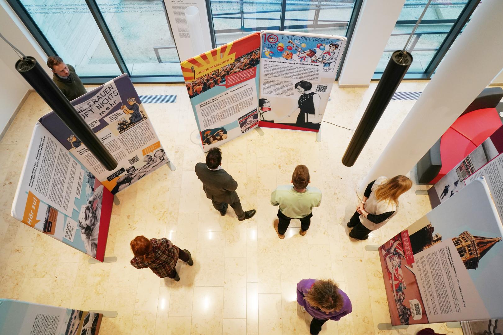 Diese Ausstellung ist eine Kombination aus visuell geprägten Ausstellungselementen und einem vertiefenden Online-Angebot. Sie gibt einen Einblick in den Alltag eines Staates, der alle Lebensbereiche der Menschen beeinflusst. Die inneren und äußeren Konflikte der DDR-Bürgerinnen und -Bürger werden anhand von typischen Lebensgeschichten sichtbar gemacht, um zu verdeutlichen, welche engen Grenzen der Staat und die ihn tragende Partei setzte – denn diese waren nicht nur aus Stacheldraht und Stein. Die Menschen sind mit den Alltagsgrenzen auf vielfältige Weise umgegangen. Themen wie Konsum, Schule und Berufsfindung, die Stellung der Frau und Familiengründung sowie der Umgang mit Umwelt und Natur werden beleuchtet. Über zahlreiche QR-Codes bietet die Ausstellung vertiefende Informationen zu einzelnen Aspekten des DDR-Alltags. Diese sind auf der Lernplattform der Konrad-Adenauer-Stiftung – dem Adenauer Campus – hinterlegt.