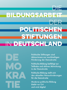 Demokratie benötigt politische Beteiligung, und politische Beteiligung benötigt politische Bildung. Die Politischen Stiftungen sind dabei wichtige Akteurinnen der demokratischen Bildungsarbeit im Land. Als Trägerinnen der politischen Bildung erfüllen sie mit ihrer Arbeit einen öffentlichen Auftrag, der für das Funktionieren der parlamentarischen Demokratie und für den gesellschaftlichen Zusammenhalt von elementarer Bedeutung ist. Als parteinahe Stiftungen stehen sie politischen Parteien nahe, sind aber inhaltlich, organisatorisch, finanziell und rechtlich unabhängig von diesen. Mit ihren Bildungsangeboten, die allen Menschen im Land offenstehen, tragen sie zum demokratischen Pluralismus und damit zur Stärkung der Parteiendemokratie in Deutschland bei.