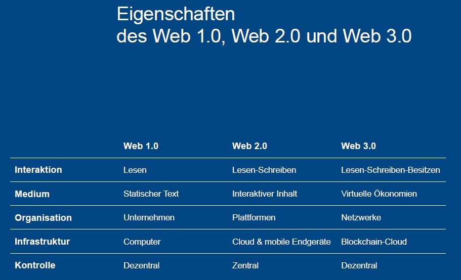 Eigeschaften Web 1.0, Web 2.0, Web 3.0 Eigene Darstellung in Anlehnung an Grayscale Investments (2021)