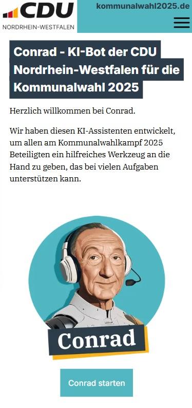 Ein besonderes Augenmerk verdient der iterative, praxisnahe Entwicklungsprozess, der zur Entstehung von Conrad geführt hat. Ausgehend von einem zunächst ehrenamtlich initiierten Projekt, kombinierte Dr. Thomas Breuer, Landesgeschäftsführer der CDU Nordrhein-Westfalen, sein politisches Know-how mit der technischen Expertise von Digital Mavericks GmbH. Unterstützt von Dr. Alain Knorr und Paul Ziemiak, Generalsekretär der CDU NRW, wurde der Chatbot gezielt an die Bedürfnisse der politischen Arbeit angepasst und von der Digital Mavericks GmbH final entwickelt. „Mit diesem KI-Bot übernimmt die CDU Nordrhein-Westfalen einmal mehr die Vorreiterrolle bei der Anwendung neuer technischer Möglichkeiten. Unser Fokus bleibt dabei klar: Die Menschen stehen im Mittelpunkt. Wir bieten unseren Mitgliedern einen vollständigen Service für den modernen, digitalen Wahlkampf an. Ich bin überzeugt: Wir setzen damit in Deutschland neue Maßstäbe für die moderne Wahlkampfführung.“, sagt Paul Ziemiak.